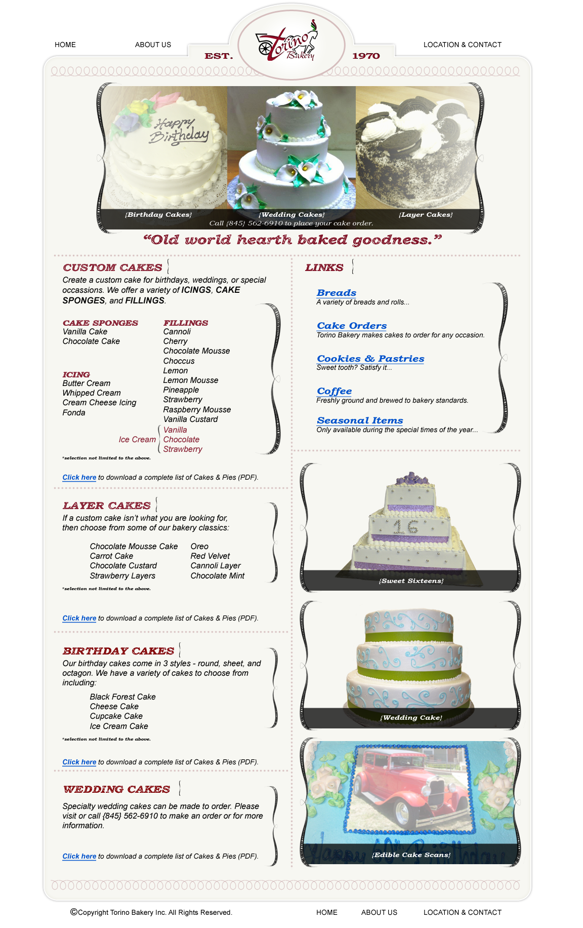 HOME ABOUT CONTACT Torino Bakery Inc. Breads Cake Orders Cookies&Pastries Coffee Seasonal Cakes & Pies List Cakes & Pies List Cakes & Pies List Cakes & Pies List HOME ABOUT CONTACT